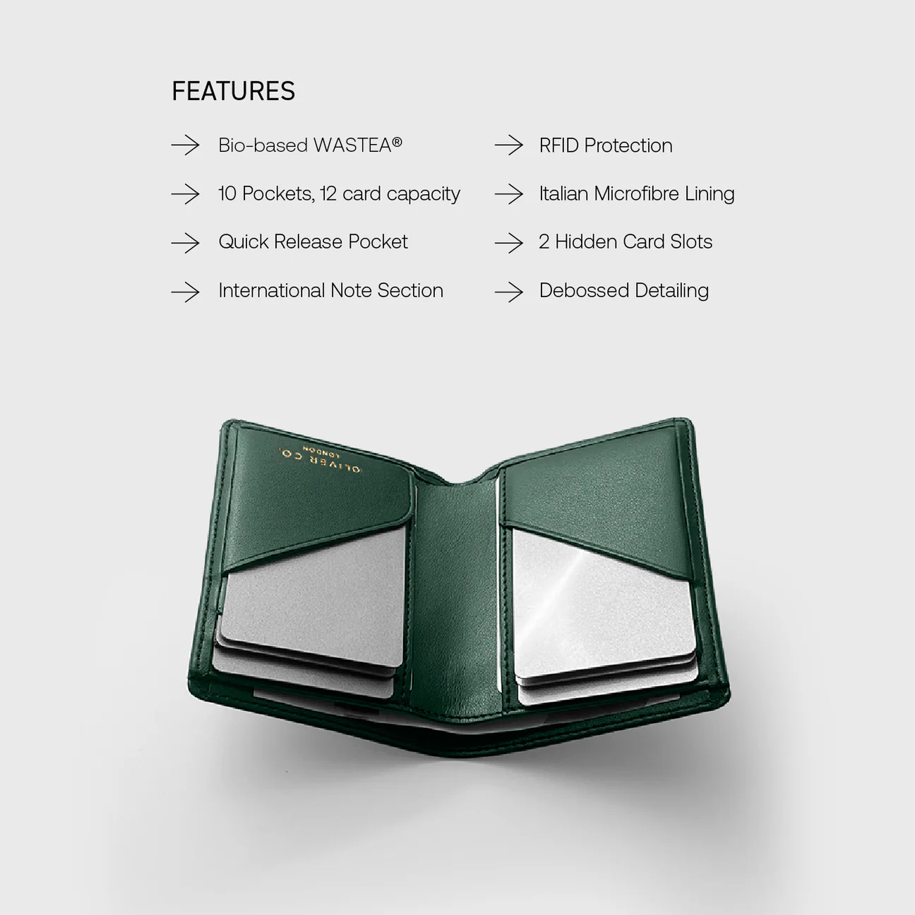A durable, premium, 10 pocket note wallet crafted from innovative plant-based materials. Sustainably considered throughout.